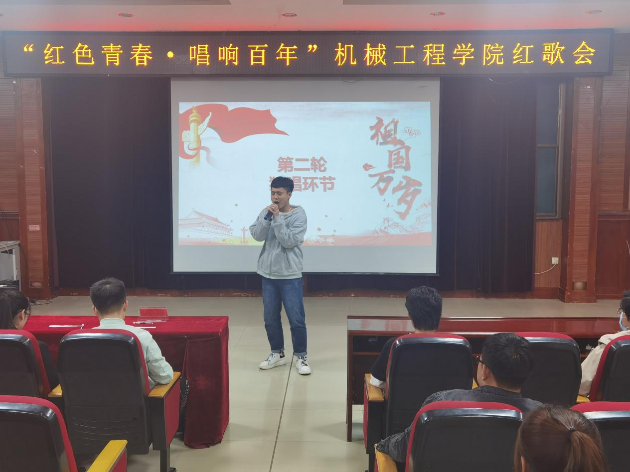 为庆祝中国共产党成立100周年,追寻革命先辈的光辉足迹,讴歌实现中华民族伟大复兴中国梦的奋斗历程,进一步增强爱党爱国热情,更加坚定跟党走中国特色社会主义道路的理想信念,推动广大师生学习中国共产党百年党史、铭记初心使命,用唱响红色歌曲的方式,传承红色经典文化弘扬时代的主旋律,彰显校园独特的文化品位,树立当代大学生对优秀文化的认同感,表达对党的热爱之情、对伟大祖国的美好祝福。机械工程学院团总支以“红色青春,唱响百年”为主题的红歌会于2021年5月12日晚在主教518会议室成功举行。
