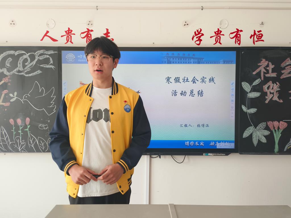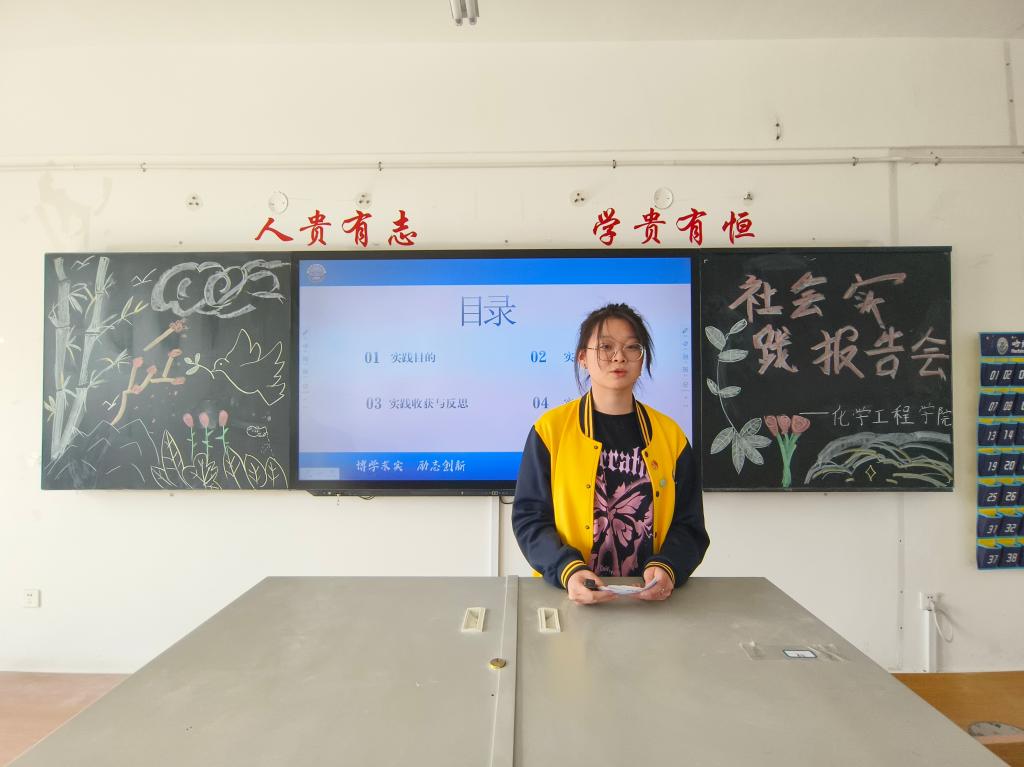 为培养大学生的责任意识和奉献精神,帮助广大青年学生在观察实践中成长,同时深化实践育人成效,鼓励同学们积极投身实践活动,展现大学生的风采。2024年4月11日,化学工程学院于第二教学楼303教室开展了以“学思践悟新思想,踔历奋进新征程”为主题的寒假社会实践报告会。党总支副书记赵婧,学生党支部书记于鑫,2020级辅导员王喃,2023级辅导员王小丽参加本次活动。