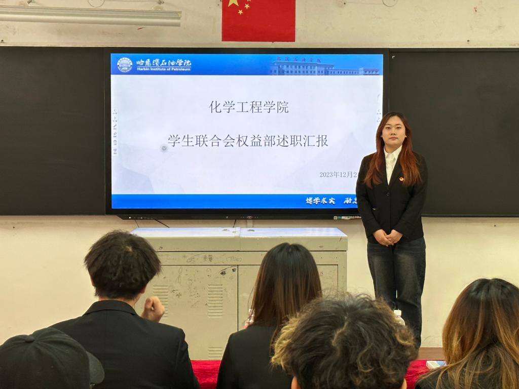 为贯彻落实学生会组织述职评议制度,加强我院学生会干部队伍建设,提升学生会成员的工作能力和水平,2023年12月21日,化学工程学院于第二教学楼309教室举行学生会述职评议会,党总支副书记赵婧、学生会成员参加。