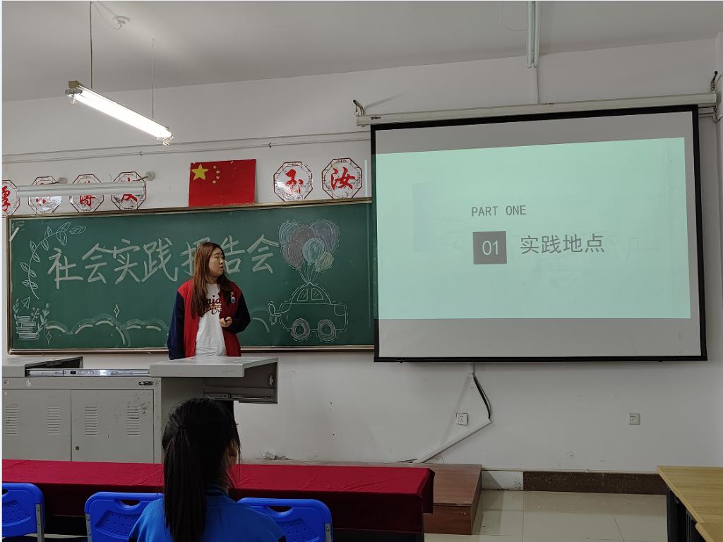 由2021级和2022级优秀社会实践代表共8人通过照片以及PPT形式进行宣讲,分别从实践地点、实践过程、实践成果等方面分享了实践调研过程中的经历见闻和心得感悟。同学们分享参加社会实践的经验,相互学习、借鉴。暑期社会实践活动为同学们提供了一个提升自身综合素质的机会,使同学们拓宽了视野,让同学们在志愿服务中找到自身价值。