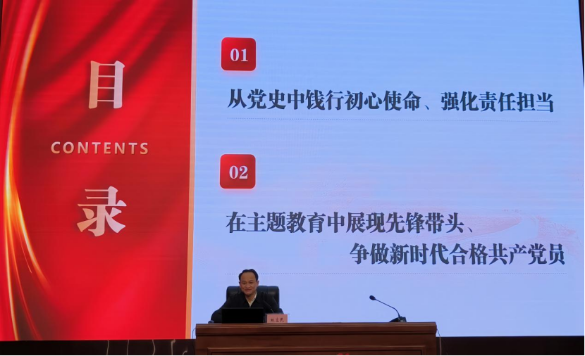 为深入开展学习贯彻习近平新时代中国特色社会主义思想主题教育,切实做到学好学深,提升党员干部的政治意识和党性意识,提高基层党组织的凝聚力和战斗力,2023年6月6日13时30分,学院师生党员齐聚图书馆报告厅,同听“学习贯彻习近平新时代中国特色社会主义思想主题教育”专题党课,此次党课由分管校领导——学校党委书记林立民主讲。