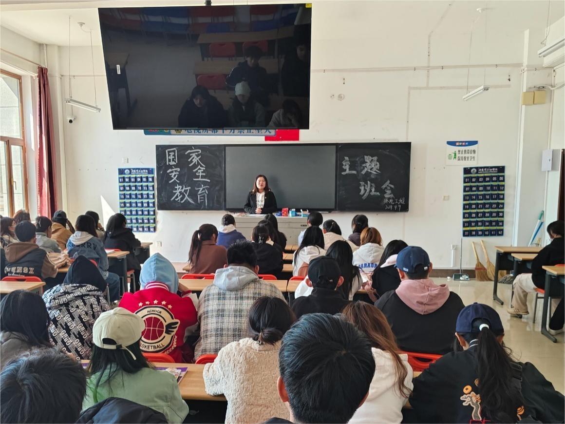 辅导员带领同学们深入学习了总体国家安全观的提出、内涵及其发展等知识,学习领会习近平总书记关于总体国家安全观的重要论述,从树立国家安全意识、不触碰法律红线、生活中我们如何做等角度对学生进行了指导,有效帮助同学们树立了国家安全意识,提高了在日常学习和生活中自觉防范国家安全风险的思想觉悟,增强了同学们的政治素养、家国情怀和民族自豪感。