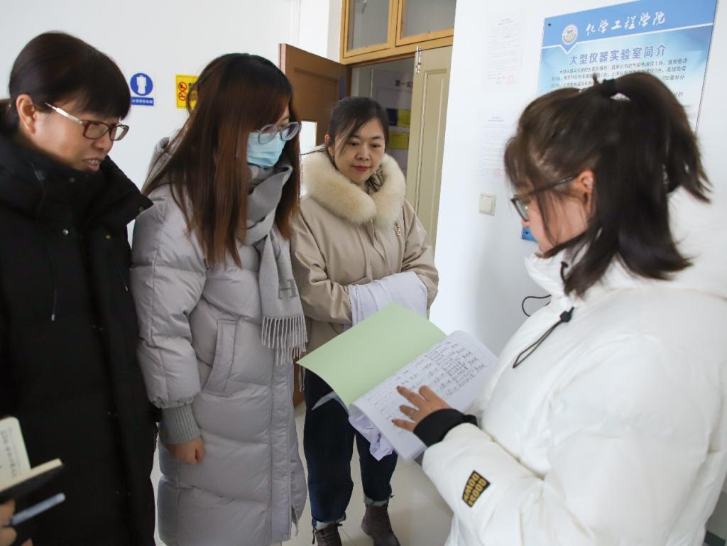 为了进一步加强学院实验室安全管理工作,确保寒假期间实验室安全,根据《万博max官网岁末年初安全生产大排查大整治工作方案》和《关于寒假前实验室安全检查的通知》要求,2023年12月25日,化学工程学院院长杨昕、党总支书记徐宏莉带队开展实验室安全现场检查,党总支副书记赵婧、各系主任陪同检查。