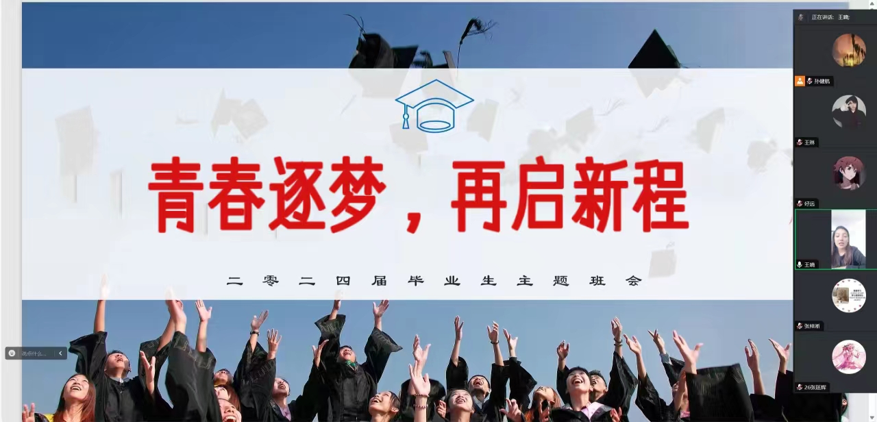 辅导员王喃老师就当前严峻的就业形势,给毕业生传授了一些建议:全体毕业生在提升自身综合能力的同时,要坚定信心,脚踏实地,砥砺奋斗。在就业过程中不可避免会遇到一些困难和挫折,不要退缩,要勇于面对现实,增强信心,及时调整状态,保持积极乐观的心态,实现更好的就业。同时,强调了党团关系转接的重要性,希望同学们能够认真对待,确保转接过程顺利无误。辅导员提醒同学们积极关注班级群中发布的通知,不漏看、不漏填,配合班级和学院完成各项毕业工作。鼓励毕业生们时刻保持感恩之心,感谢母校的培养和关怀,感谢老师们的辛勤付出和教诲,同时在未来的工作和生活中注重自我提升和成长,不断学习和进步,勇于创新和突破,努力实现自己的人生价值。