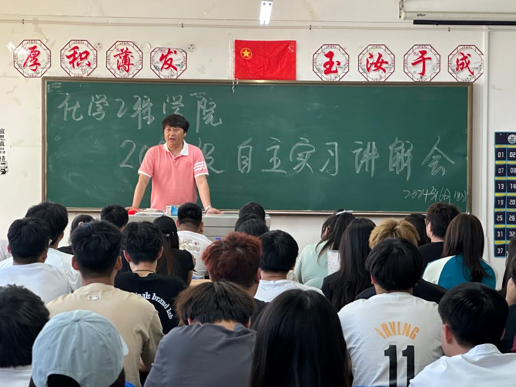 为帮助学生深入了解实习政策,明确实习要求,为即将步入实习岗位的学生提供全面而细致的指导,引导同学们做好实习前的各项准备。2024年6月20日,化学工程学院于第二教学楼307室开展2021级自主实习讲解会。会议由党总支副书记赵婧主持,副院长彭殿宝和2021级自主学生参加本次会议。