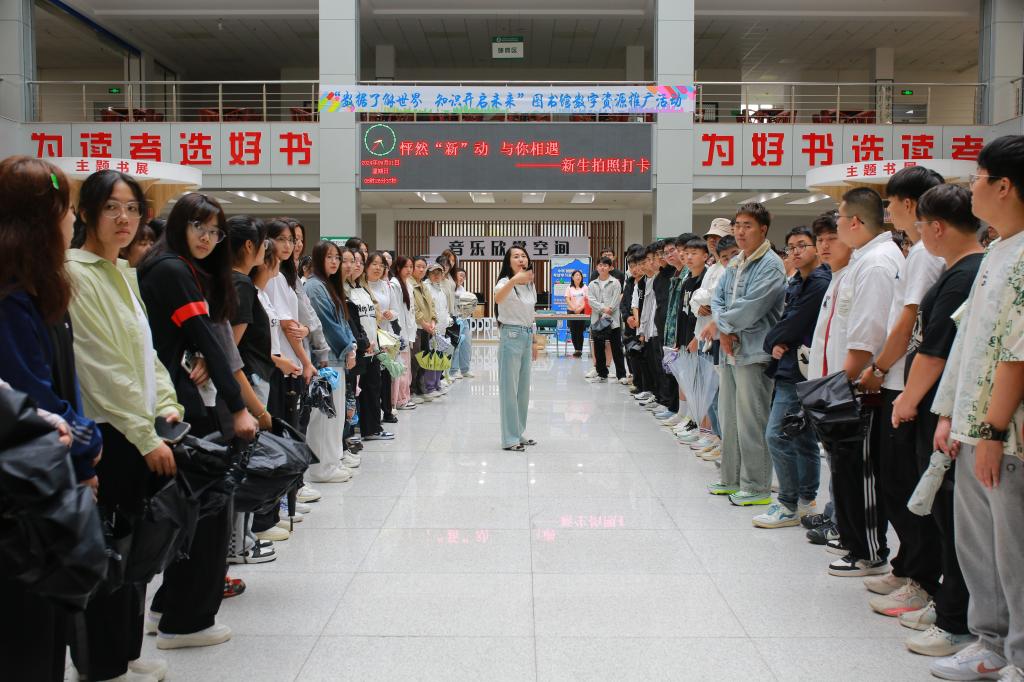 新生在讲解员的带领下,踏入了这座知识殿堂。讲解员首先为新生们简要介绍了图书馆的功能和服务,并引导大家关注图书馆公众号,以便日后能够便捷地获取阅读资讯和活动讲座等信息。同时细致地介绍各个书库的特点,手把手地教新生们如何使用自助借还设备。帮助新生们能在未来的学习生活中,轻松享受到图书馆带来的便利。
