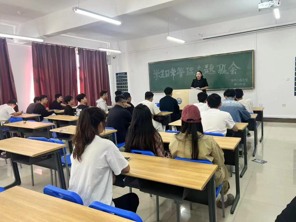 为教育引导2024专升本学生强化校园纪律意识、责任意识,严格遵守学校各项规章制度,2024年9月3日,化学工程学院组织开展2024专升本学生违纪处分规定及日常管理主题班会。由2022级辅导员于鑫老师主讲,2024专升本学生参加本次会议。
