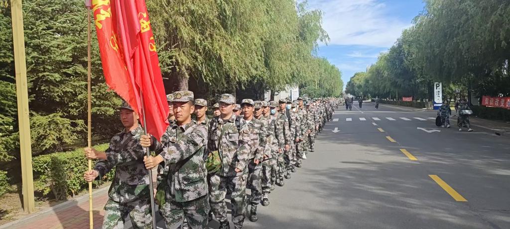 微风摇曳着连队的旗帜,耀眼而温柔的这抹红色在朝阳下舞动着。2024年9月11日九点集合完毕,化学工程学院2024级新生排着整齐的队伍,用青春的脚步丈量着成长的距离,开启了为时一天的军训拉练之旅。