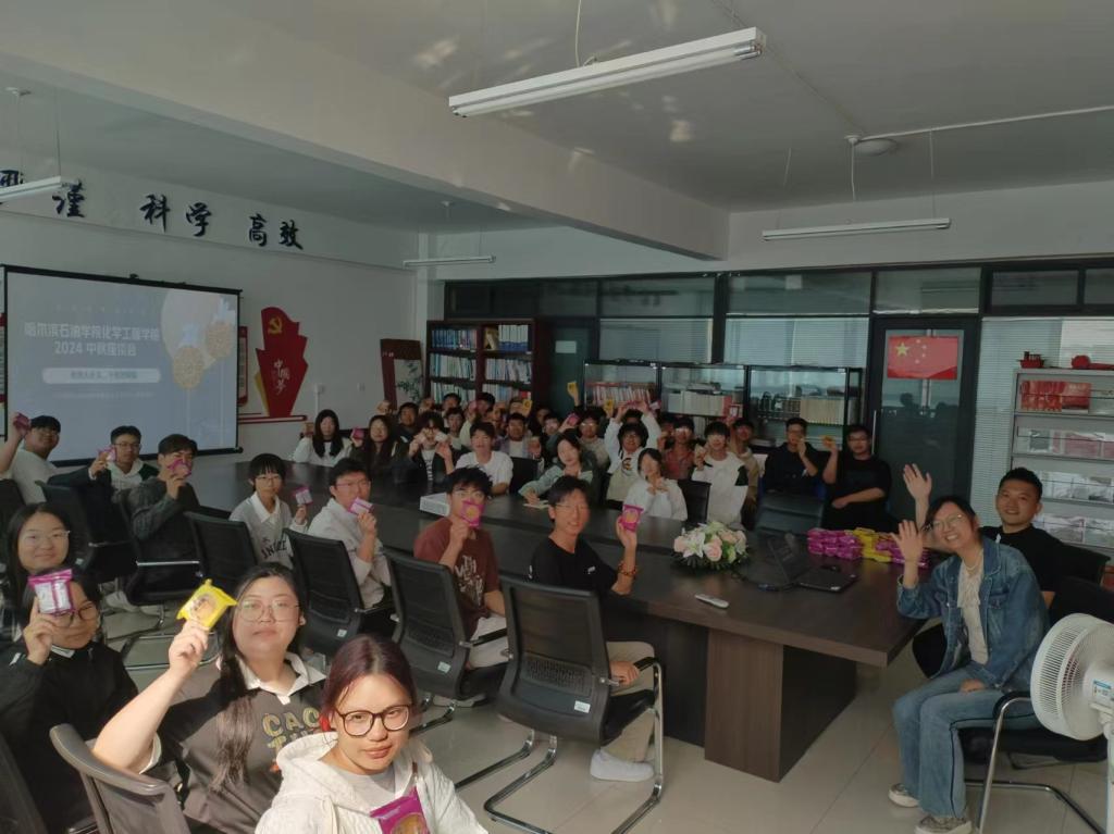 月满中秋,情满化工。此次中秋慰问活动不仅让2024级新生们感受到了传统节日的温馨氛围,也进一步提高了同学们对化工大家庭的归属感。愿这份心意如同中秋的明月,照亮每一位同学的心房。最后,祝愿化学工程学院全体师生中秋快乐,平安顺遂,万事胜意!