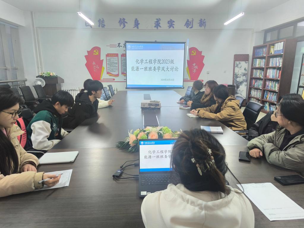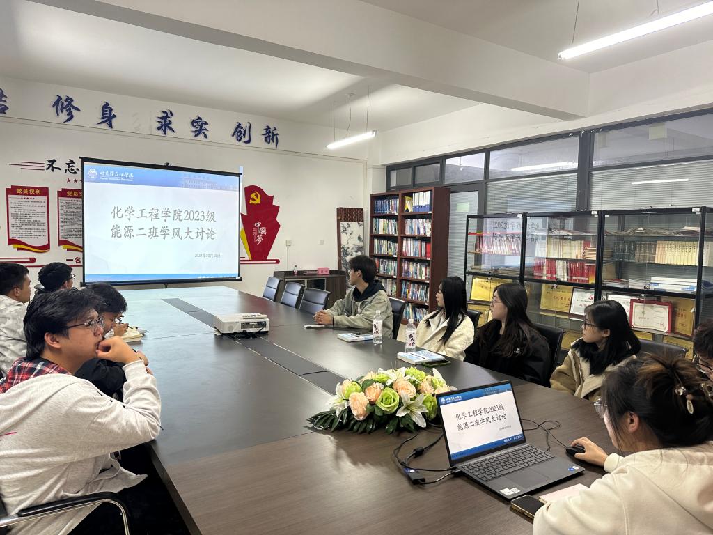 为巩固以往的学风建设成果,形成常态化教育机制,推动学院学风建设,提升人才培养质量,进一步落实《万博max官网“学风建设年”实施方案》和《关于开展学工系统学风建设大讨论的通知》的文件要求,2024年10月15日,化学工程学院于第二教学楼党员之家开展2023级能源化学工程专业班委学风建设主题班会。本次会议由2023级辅导员王小丽主持,2023级能源化学工程专业班委参加。