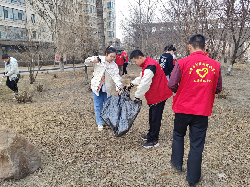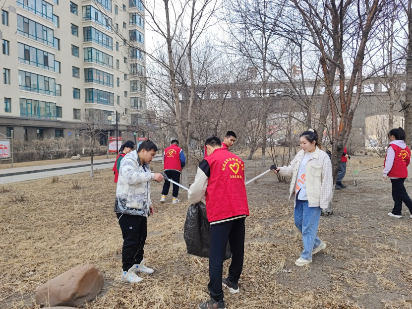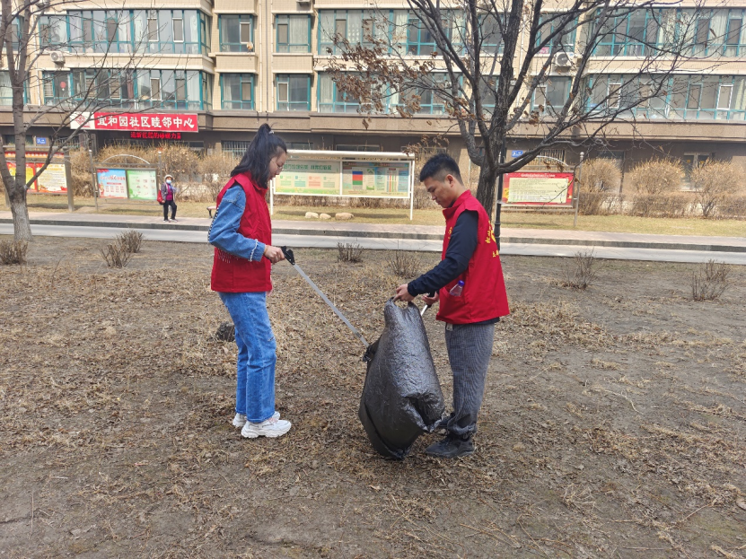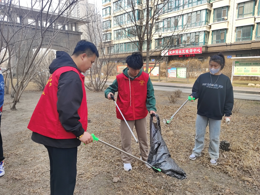 上午,各团支部成员们身着统一的红色马甲,以朝气蓬勃的精神面貌前往宜和园社区,参与此次实践活动。志愿者们在社区工作人员的指引下,整理了沿街杂物,清扫楼道死角、草坪垃圾,以实际行动让社区的环境焕然一新,践行了“我为群众办实事”的青年责任与担当,同时也为构建和谐社区、创建和谐社会贡献出青年力量。