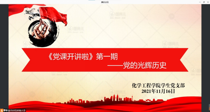 为深入学习贯彻习近平总书记在庆祝中国共产党成立100周年大会上的重要讲话精神,2021年11月16日,化学工程学院学生党支部于线上开展党课讨论活动,学生党支部书记于鑫主持,共38名学生党员参加。
