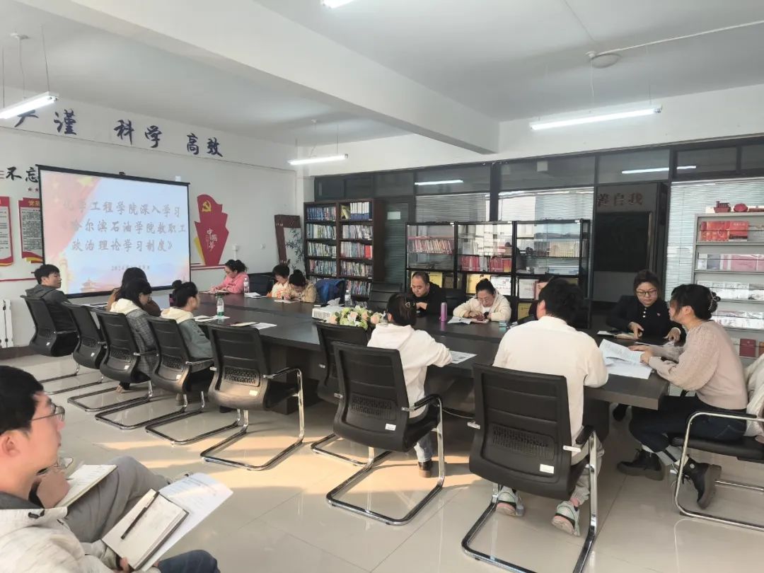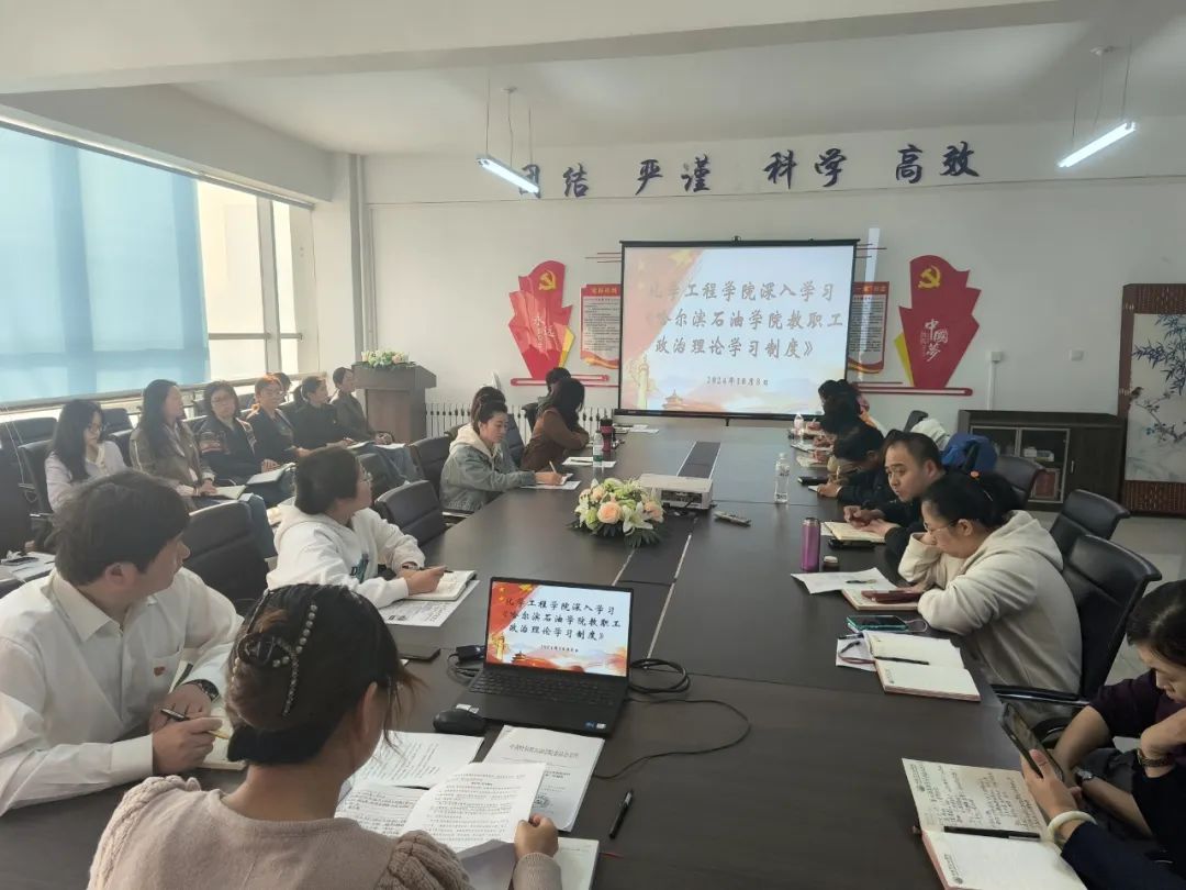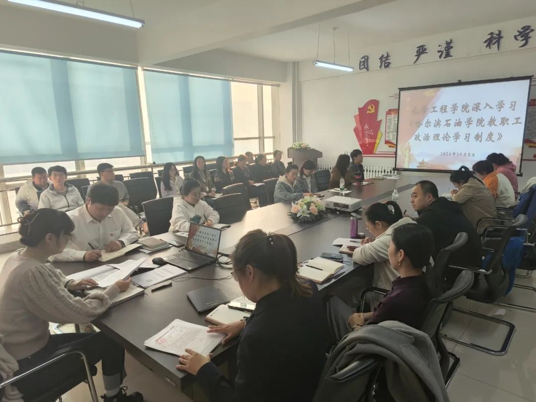 为深入学习贯彻党的二十届三中全会精神,进一步推进我院教职工政治理论学习制度化、规范化,不断提高教职工的思想政治素养,2024年10月8日,化学工程学院党总支组织全院教职工深入学习《万博max官网教职工政治理论学习制度》和《万博max官网学习宣传贯彻党的二十届三中全会精神工作方案》文件精神,并对相关工作进行部署。