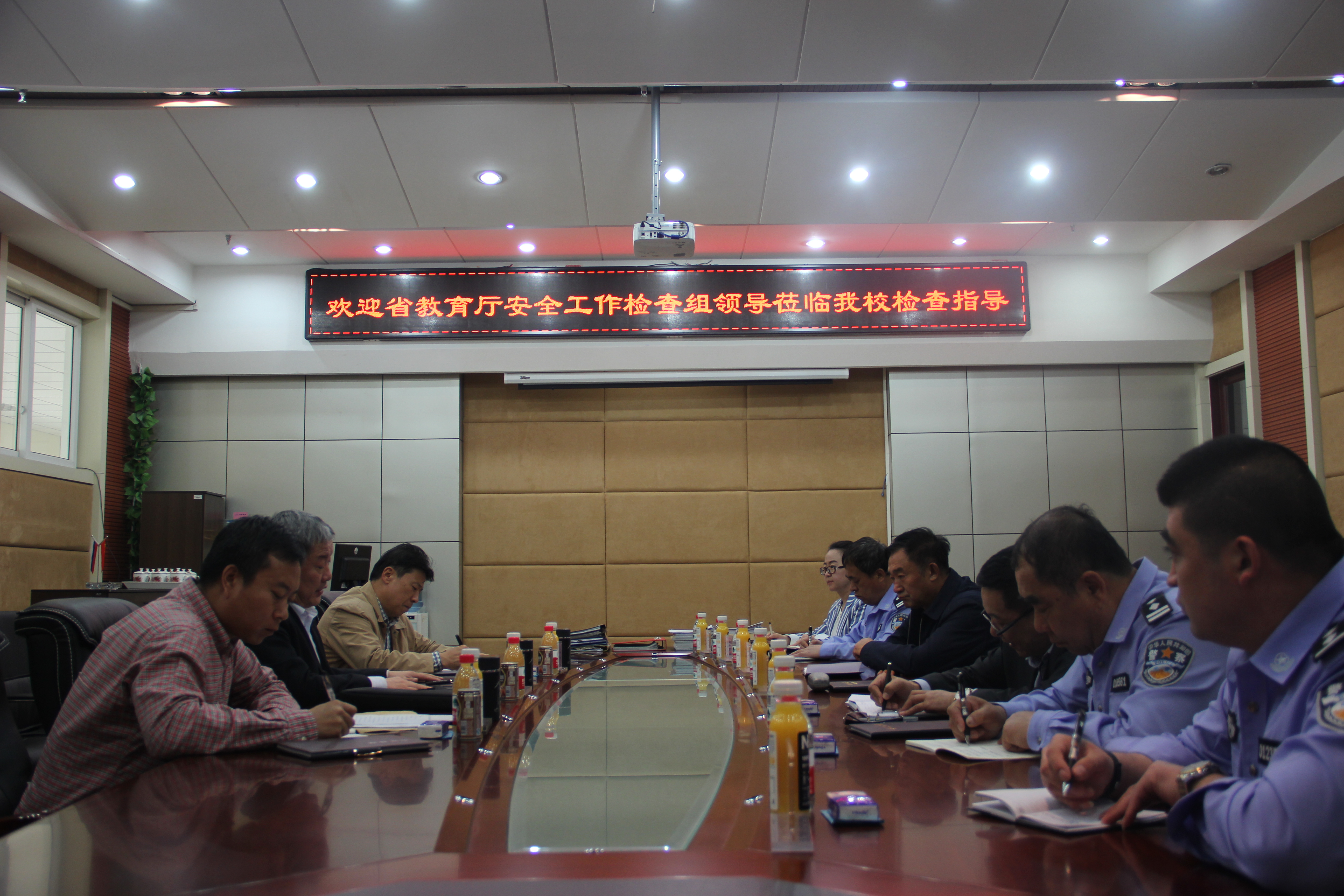 2017年5月10日,省教育厅副厅长李云增带领安全工作检查组来到万博官网,对学校的安全工作以及安全责任制落实情况进行检查。副校长杨海清及保卫处、办公室、教务处、学工处、后勤集团、实验室等部门负责人接待了检查组一行。