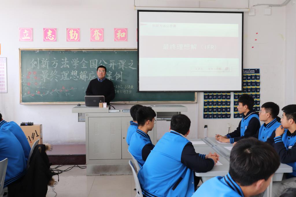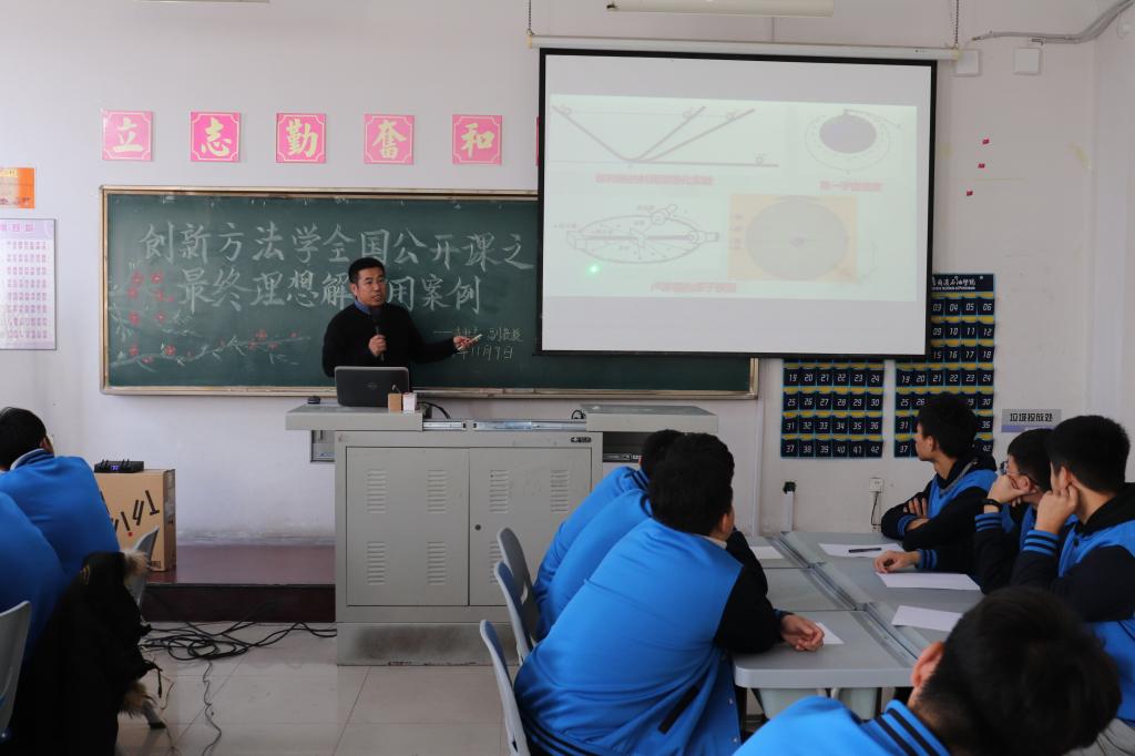 授课中,支教授诙谐幽默将大家引入创新课堂,从五种克服思维惯性的方法入手,着重讲解最终理想解创新思维,从最终理想解的定义、层次和应用注意事项等方面,举一反三,通过公开课为学生解答最终理想解应用方面容易出现的问题,为应用最终理想解理清思路,抓住重点,使学生能够应用该方法快速有效的解决技术问题。