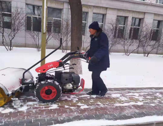 第二天大雪再次降临,在雪中奋战一夜的学校后勤清雪大军,“以雪为令”再次投入到清雪工作中,对校园主干街道进行反复清扫作业,不间断地清雪工作为校园的师生出行保驾护航。