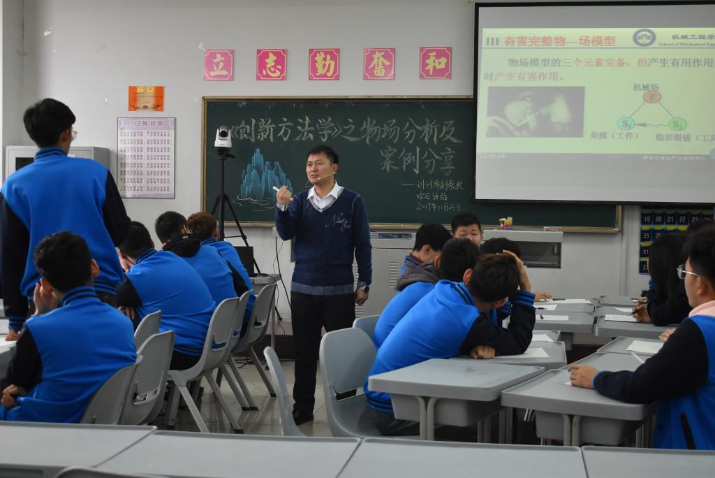 2019年11月23日,第三次“创新方法学”全国公开见面课之“物场分析及案例分享”在万博官网举办。此次公开课由“创新方法学”师资团队主讲教师、黑龙江科技大学刘训涛副教授讲授,万博官网50余名学生观看全国公开课的现场直播。