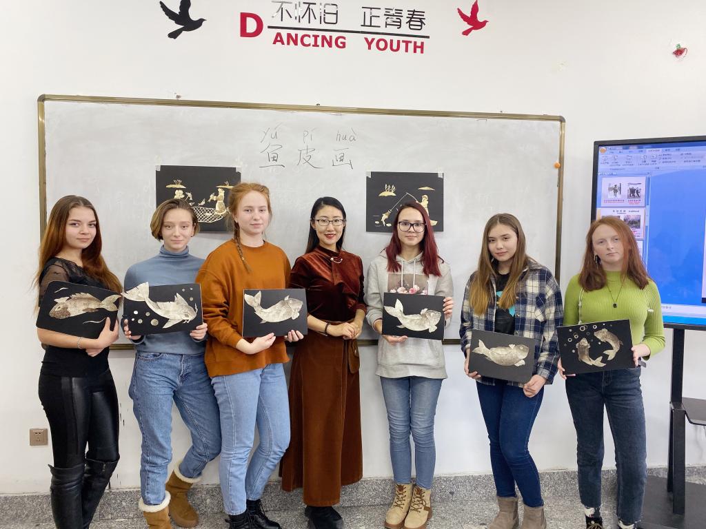 11月27日下午国际教育学院为留学生开展了鱼皮画制作课,让留学生们在了解黑龙江省历史文化的同时,深入了解赫哲族文化和极具民族鲜明特色的鱼皮画艺术,在亲身制作中感受鱼皮画作为非物质文化遗产的独特魅力。