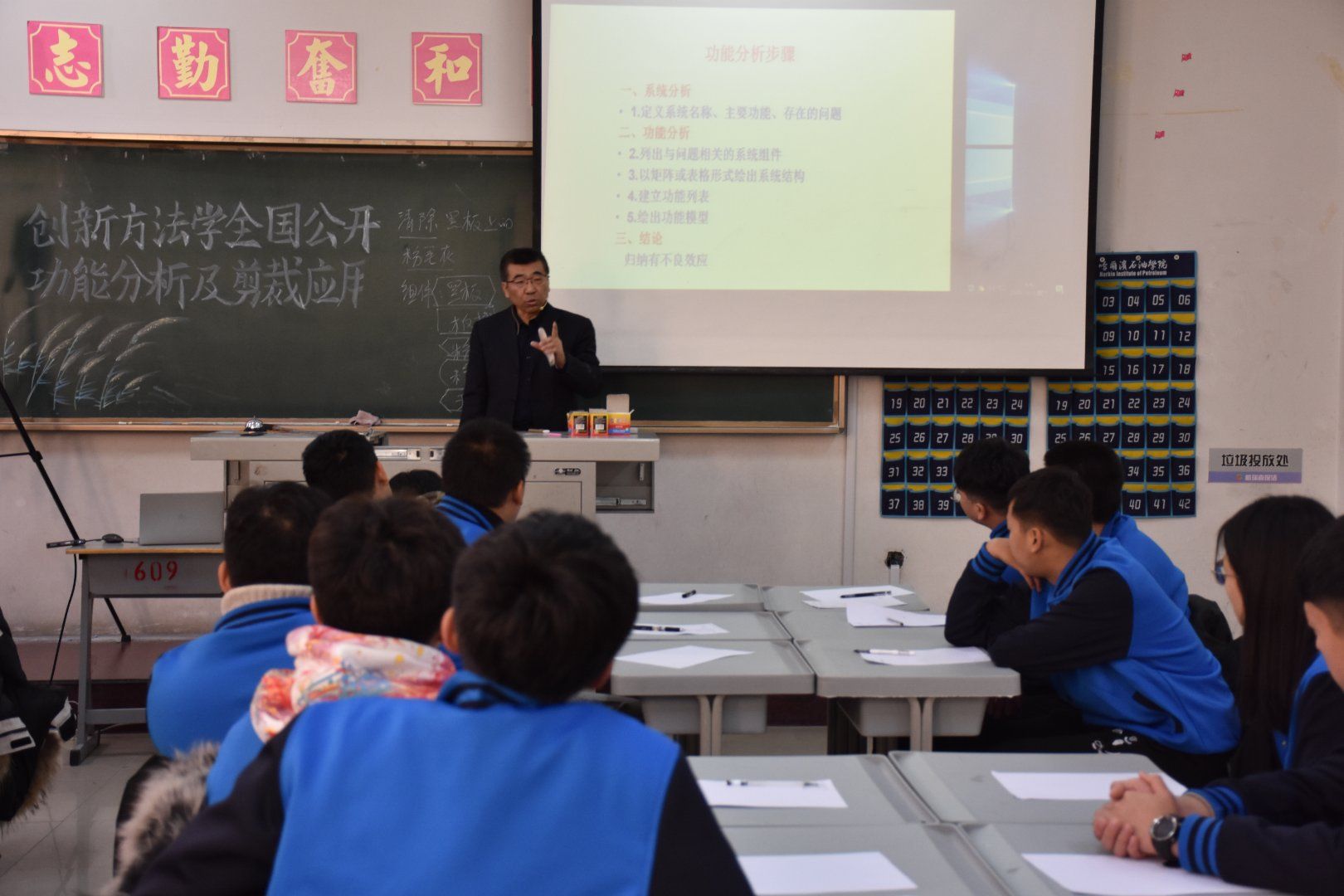 2019年12月7日下午在万博max官网主教506教室开展了第四次创新方法学“全国公开见面课之功能分析及剪裁案例”,本次见面课程由黑龙江省创新培训与咨询团队首席培训师孙国强老师讲授,万博官网师生及全国选课高校师生参加了此次万博max官网创新方法学全国公开见面课。