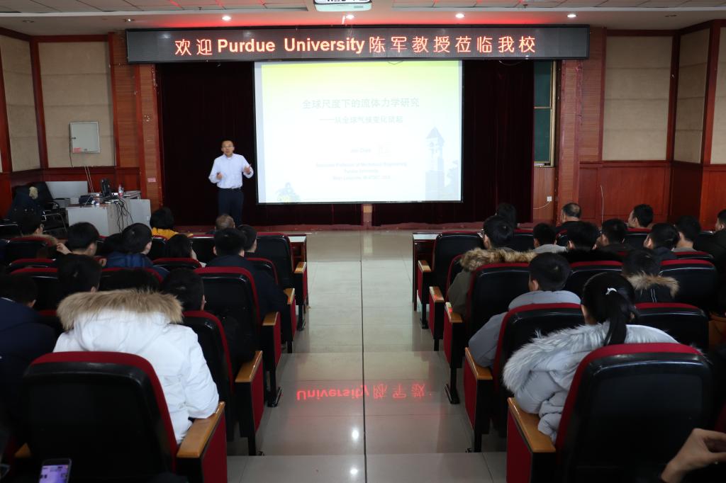 为活跃学术气氛,拓宽万博官网师生的视野,激发哈油学子的学术钻研热情,2019年12月17日,美国PURDUE UNIVERSITY 终身教师、副教授、博导陈军老师在主教518报告厅作了题为“全球尺度下的流体力学研究——从全球气候变化叹气”的学术报告会。来自石油、机械、化工、土木的教师代表及机械工程学院2017级考研班学生参加了本次报告会。