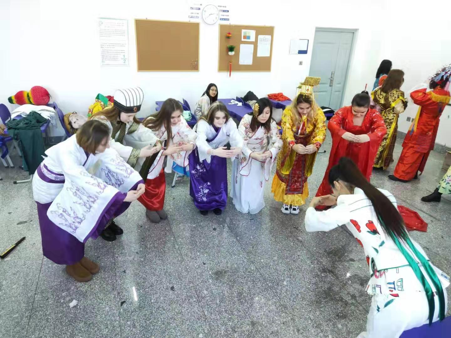 在学习礼仪后,老师为同学们准备了多个主题的历史情景剧。留学生纷纷换上自己喜欢的角色服饰开始排练。同时通过情景剧融入古代角色,在潜移默化中帮助留学生理解懂礼仪、明孝悌、立远志的中国传统文化思想的课程目标。