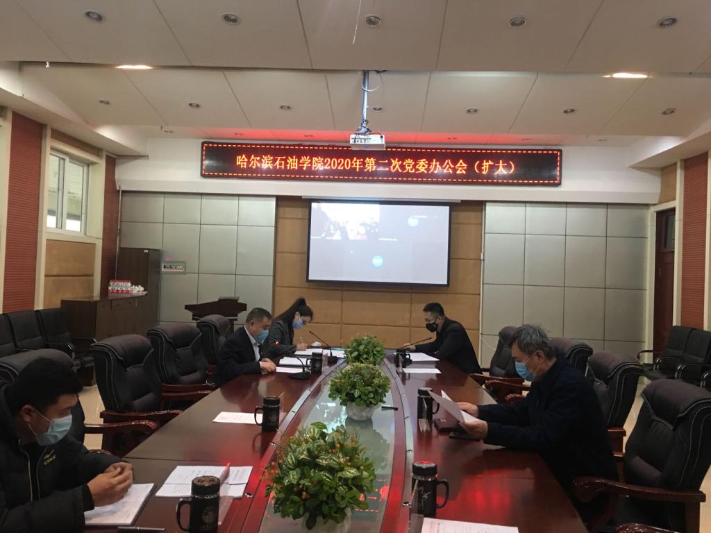 4月20日上午,万博max官网2020年第二次党委办公会(扩大)会议在主楼320会议室召开。此次会议仍采取现场与线上相结合的形式进行,会议由党委书记焦光纯主持,学校全体党委委员及列席成员参加。