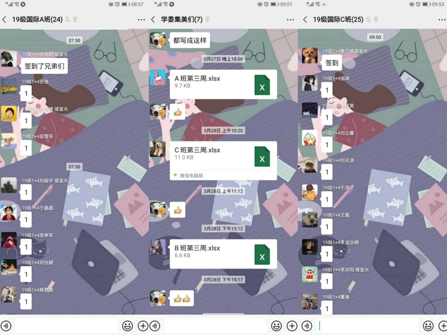 班长们每天督促同学们课前十分钟微信签到,以确保能够全员出勤。