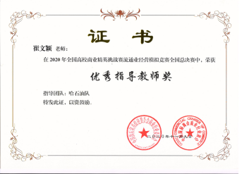 面对强劲的对手,万博官网学生毫不畏惧,敢于拼搏,用实际行动,践行着哈油精神。本次大赛分为多个模块,分别是产品定价,预计产品销售量,预计产品进货量,产品营销计划,产品研发计划,借还款。小组成员各司其职,密切配合,共同分析并预测市场形式,每期比赛后,根据本期市场情况制定下一期的战略。最终由王汐浩、高宇航、张宇、马巧凌、白思琪、李玉梅六名同学组成的“雪蜜连锁有限公司”代表队,王晓慧、王广昊、李美洋、高海凤、陈兴宇、纪星月六名同学组成的“星宇连锁有限公司”代表队脱颖而出,取得了国家级一等奖的优异成绩,同时他们还以小组第一的绝对优势顺利进入到下一轮精英赛。