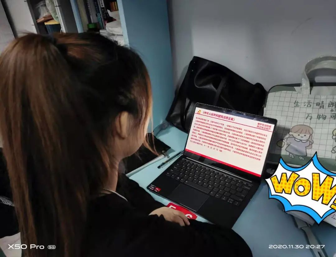 会议结束后,校团委组织学生干部自己进行宪法知识的了解,通过会议讲解后,学生们纷纷感觉意犹未尽,自学环节全部积极踊跃参与,通过自主学习后,同学们更多的了解到宪法的发布、改革和相关宪法故事等,对此产生浓厚兴趣,并表示要更加更加深入学习宪法知识,走进宪法,弘扬宪法精神,保护宪法权威。