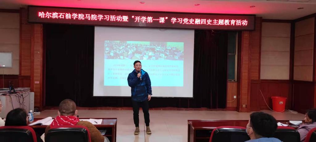 为深入贯彻落实习近平总书记关于新时代爱国运动的指示精神,持续深化爱国主义教育,深入推进党史、新中国史、改革开放史、社会主义发展史教育,更好地促进校园文化建设,提升万博官网大学生的综合素养。根据黑龙江省教育厅《关于做好2021年度春季学期“开学第一课”等相关工作》的文件要求,万博max官网于2021年3月16日12时在主教学楼518会议室举办了万博max官网青马工程学习活动暨“开学第一课”学习党史融四史主题教育活动。万博max官网马克思主义学院宋玉玲院长和马克思主义学院、校学工处、校团委全体老师参加了此次活动。