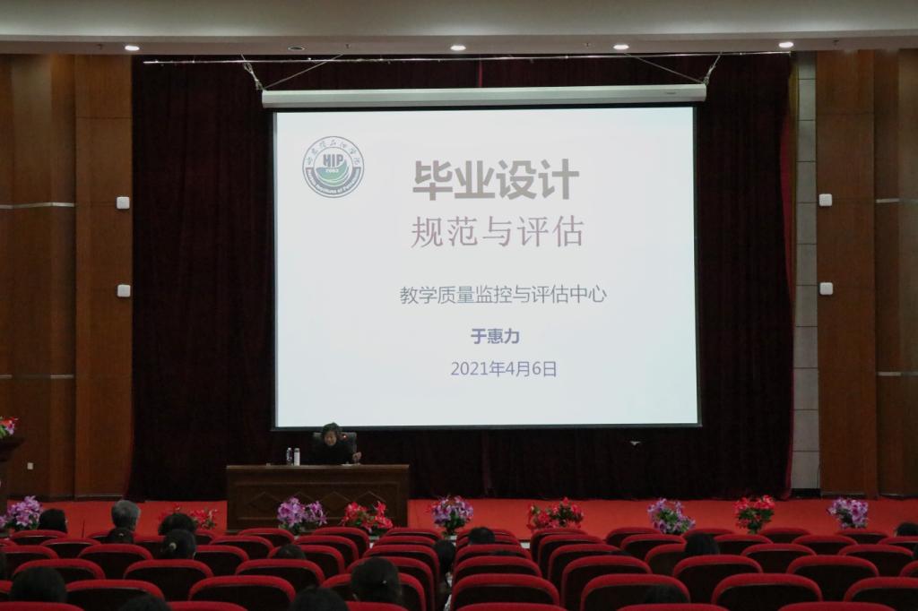 为进一步贯彻落实教育部《关于加快建设高水平本科教育全面提高人才培养能力的意见》、《本科毕业论文(设计)抽检办法(试行)》等文件精神,扎实推进本科教学合格评估整改工作,不断提高万博官网本科毕业论文(设计)质量,2021年4月6日下午,万博官网教学质量监控与评估中心在图书馆报告厅召开了毕业设计规范与评估研讨会。副校长胡文出席会议,会议由中心张耘主任主持,校总督学于惠力教授担任主讲,教学质量监控与评估中心、教务处以及参与毕业论文(设计)相关工作的全体教师参加会议。