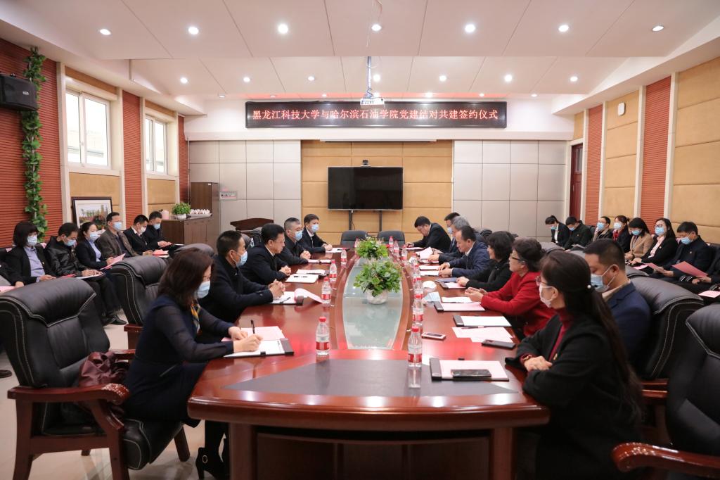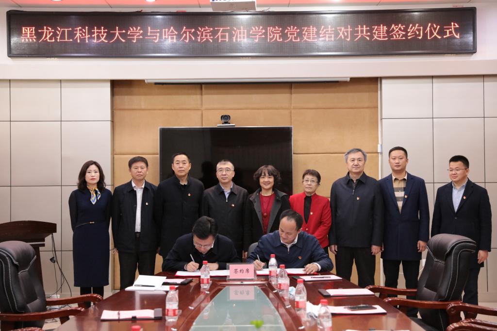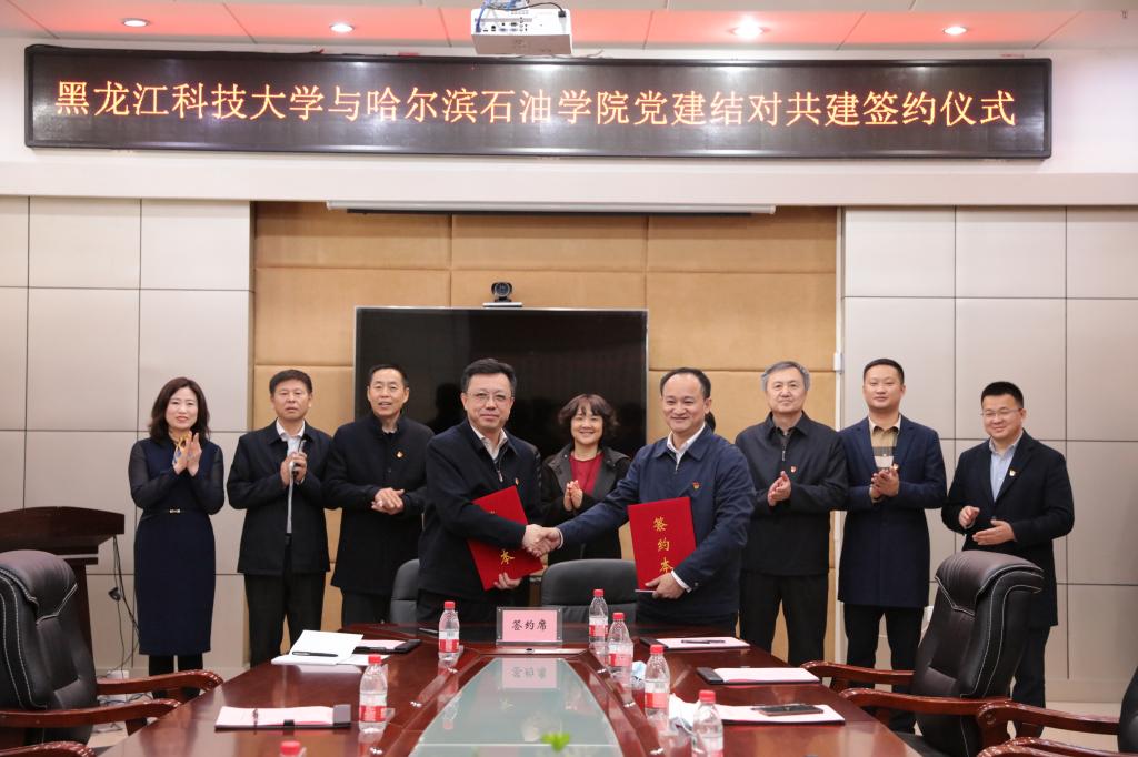 黑龙江科技大学党委书记周宏力与万博max官网党委书记林立民代表双方学校签署党建结对共建协议。