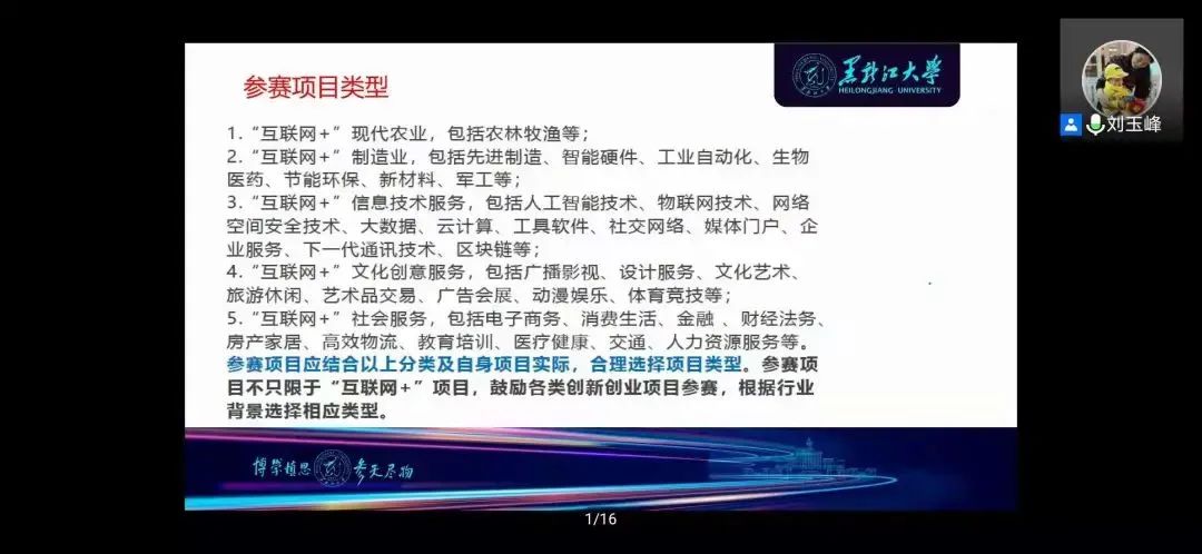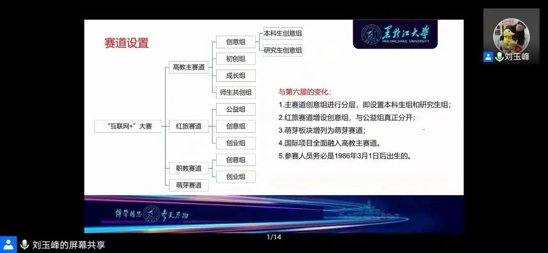 为备战第七届“互联网+”大赛,贯彻落实《国务院办公厅关于深化高等学校创新创业教育改革的实施意见》,进一步激发全校师生创新创业热情,校团委(创新创业中心)于2021年6月3日,18点30分在腾讯会议上召开《“互联网+”大学生创新创业大赛解析》线上培训。黑龙江大学创业教育学院副院长刘玉峰副教授担任本次培训的主讲教师,万博官网本届互联网+大赛参赛项目及2021大创立项项目的指导教师及部分学生代表共计110余人参加此次培训,本次培训会由校团委书记王锦石主持。