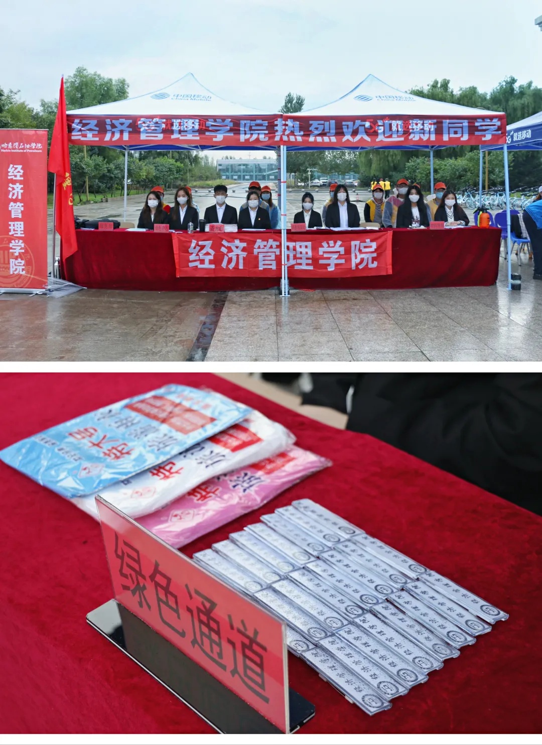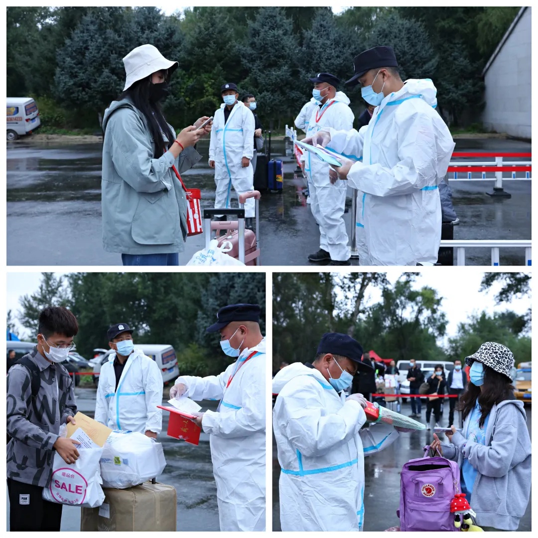根据疫情防控要求,学校将南门设置为新生入校通道,配备体温监测仪、粘贴1.5米间隔线,引导新生有序排队。进校前,学校相关工作人员对新生进行仔细的“四查”“一测”,即查验健康码、行程卡、48小时内的核酸检测报告、录取通知书以及测量体温,符合要求方可入校,确保迎新现场安全稳定。