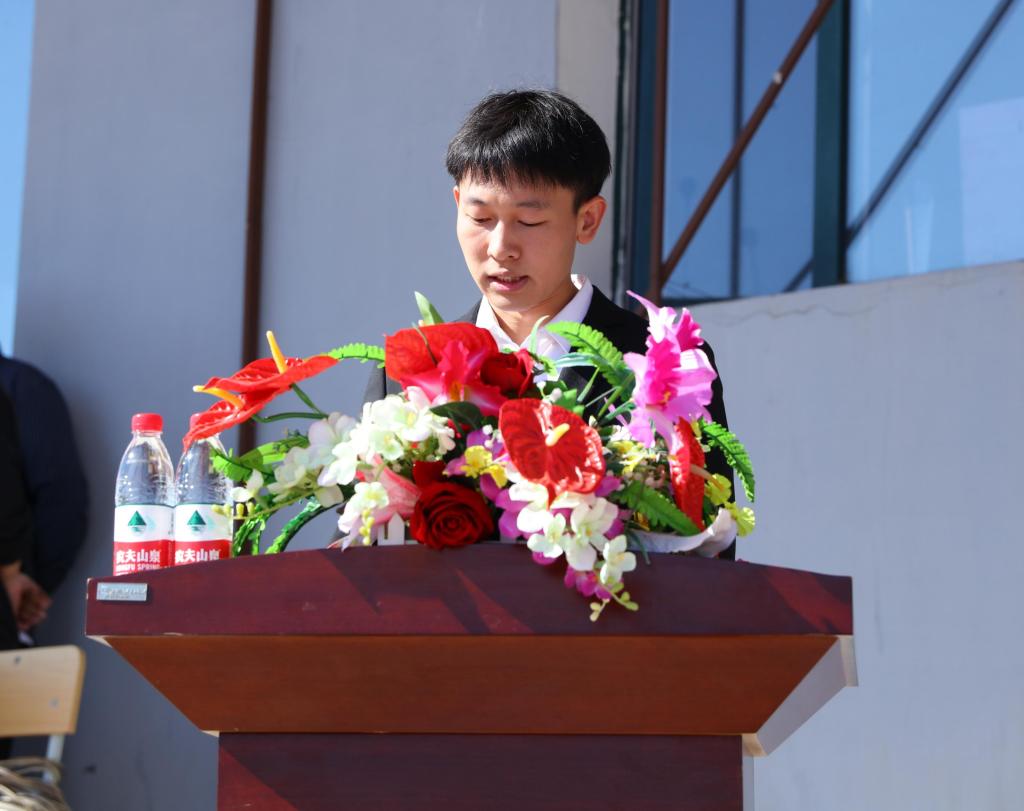 机械工程学院2019级学生张思昊作为在校生代表发言,他分享了两年来在哈油不断成长、提升自我的经历,希望新生同学们能充实的度过自己的大学四年,在奋斗中成就更好的自己。