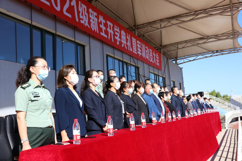 秋风习习,军旗猎猎,绿草茵茵的体育场上,全体2021级新生意气风发、神采飞扬。大会在庄严的国歌中拉开帷幕。