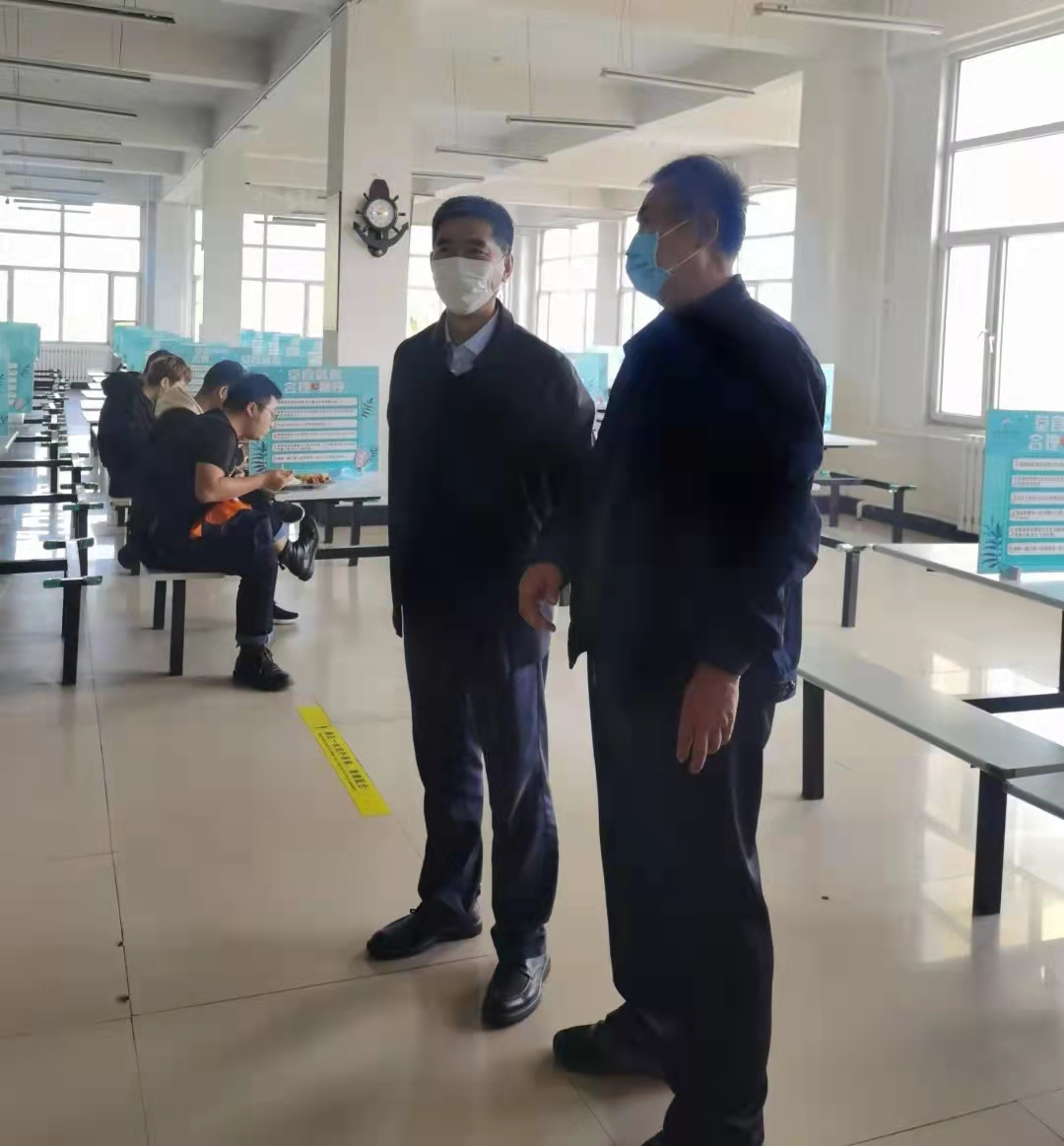 校领导一行首先对食堂消毒、通风、餐桌布置等疫情防控工作落实进行了查看,并详细了解了食堂就餐流程及防护措施等细节。