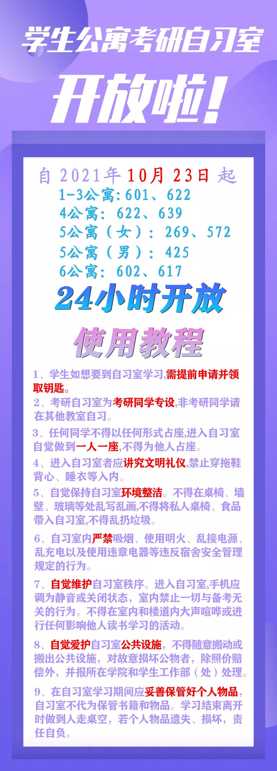 党史学习教育开展以来,学院切实听取学生诉求,为学生办实事、解难题,在考研倒计时两个月之际,继图书馆四楼设立考研区外,又在每个公寓楼单独设置考研自习室,充分体现万博官网对于学生考研的支持,用行动做好考研学子的服务保障工作。
