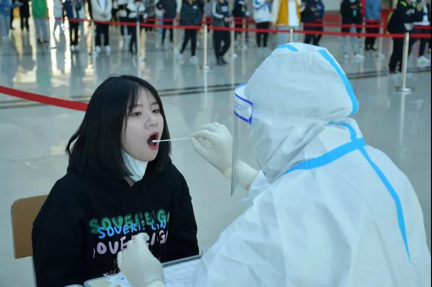 本轮的核酸检测对于哈油师生来说熟悉且陌生,熟悉的核酸场地、熟悉的检测方式,陌生的是医护服里不同的坚守一线的医护人员。全校师生依旧分时段分批次进场,间隔一米排队整齐,提交身份证件,进行核酸检测,有秩序离开场地。学生与在场的工作人员完美配合,整个检测过程平稳高效。