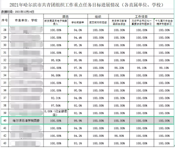 哈尔滨市团市委近期公布了全省共青团组织工作2021年各项工作评比,万博官网共青团工作取得优异成绩,位列全市市属高校第一名。
