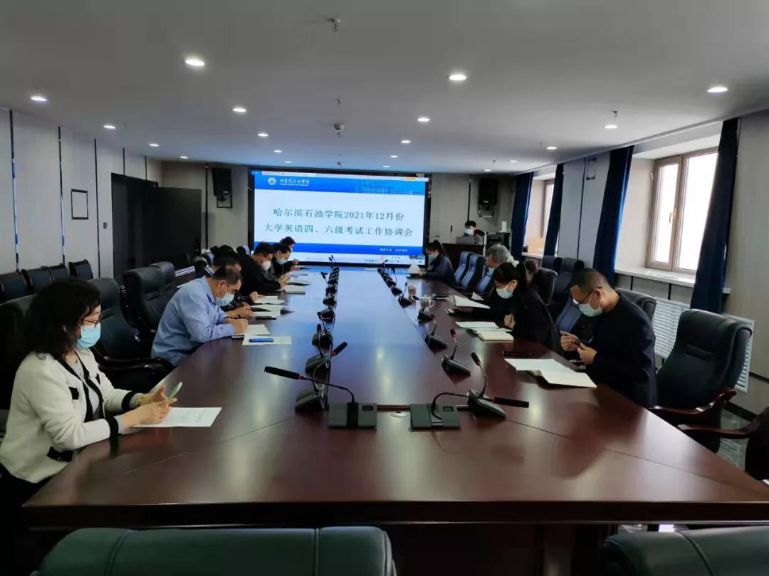 2021年12月16日上午,2021年下半年全国大学英语四、六级考试工作协调会在综合楼1515会议室及腾讯会议室同时召开。会议由教学校长胡文主持,党委副书记、纪委书记杨宏出席会议。党委行政办公室、党委宣传统战部、教学质量监控与评估中心、学工处、团委、保卫处、资产处、后勤处等相关部门负责人、各学院巡考人员、教务处全体成员参加了本次会议。