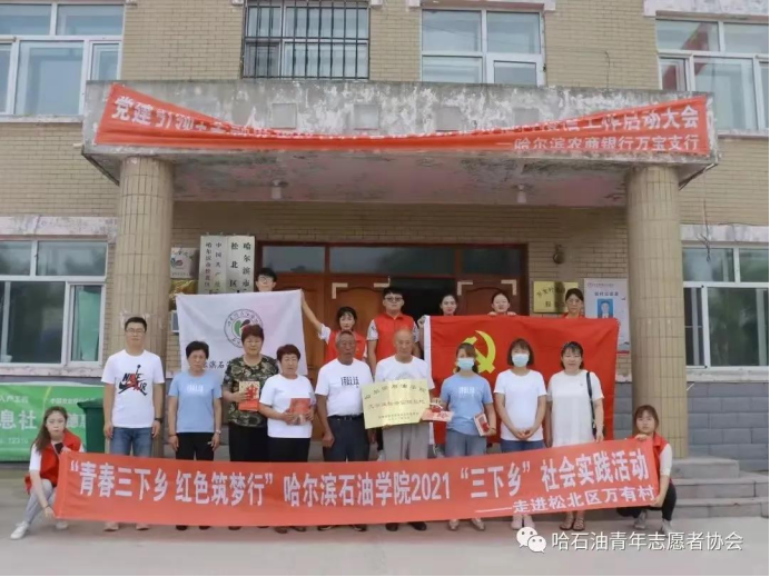 2021年万博官网共组建党史学习实践团2支、理论宣讲实践团1支、国情观实践团1支、乡村振兴实践团15支,共计19支志愿者服务队,分别在哈尔滨市道里区新发镇三场村、呼兰区原野村、萧红故居、延寿县桃山村等19地开展了暑期“三下乡”社会实践活动,累计参与人数359人次。志愿者们分别组织开展党史知识宣讲、疫情防控普法知识宣讲、积极开展扶贫调研、志愿帮扶实践、普及助农知识、关爱留守儿童、敬老慰老等相关志愿服务活动,为今后踊跃参与到乡村振兴战略中打下坚实的基础。
