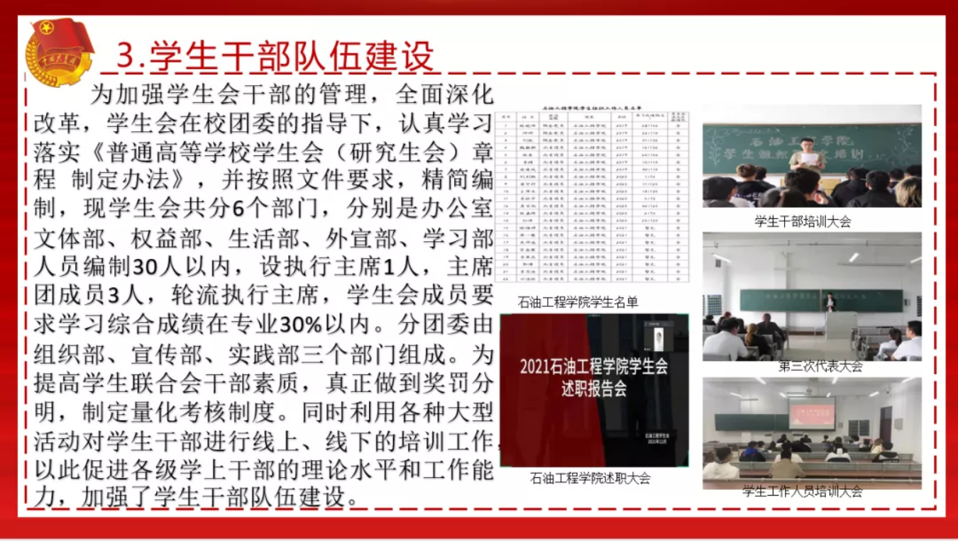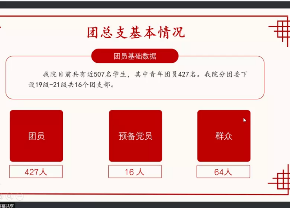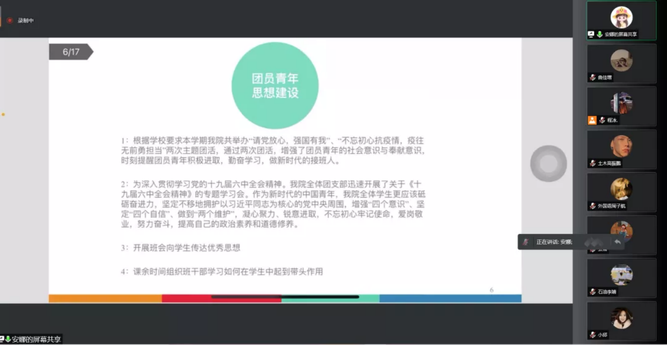 为深入贯彻落实习近平总书记关于青年工作的重要思想,进一步加强共青团基层组织的建设,增强基层团组织活力,2022年1月7日下午13点校团委召开2021年度基层团总支述书记职评议会,校团委书记王锦石、副书记彭雷、组宣部部长冯海龙、干事吕家妮、各学院团总支书记及学生代表参共计35人参会,会议由校团委书记王锦石主持。