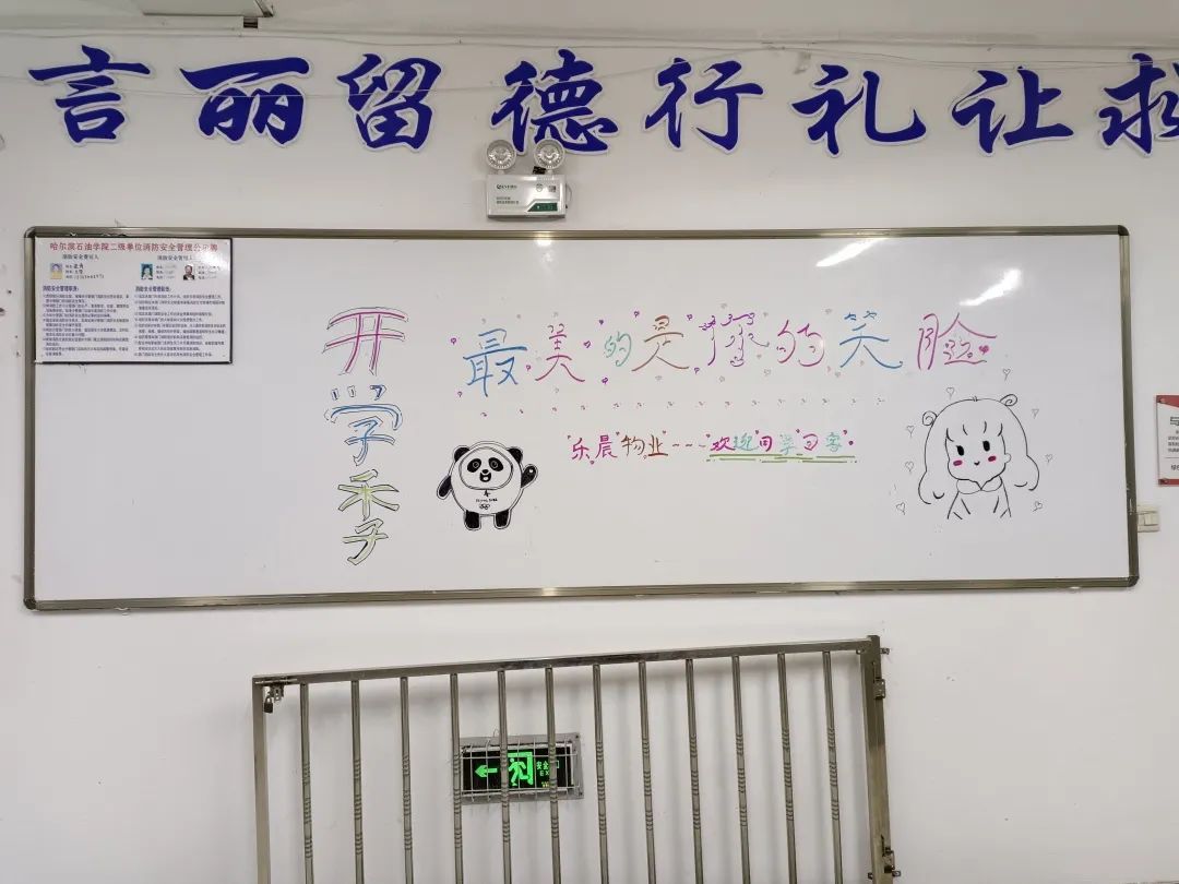 新学期如约而至,为了迎接哈油学子归来,学校各部门各出奇招,旨在给同学们家一般的温暖。其中万博官网后勤处宿管老师化身“灵魂画手”,集体出板报!用不同的字体、绘画承包了6个公寓板报,紧跟时代步伐,惊现“冰墩墩”、“王者归来”、“卡通形象”等热搜人物,另同学们欣喜万分。