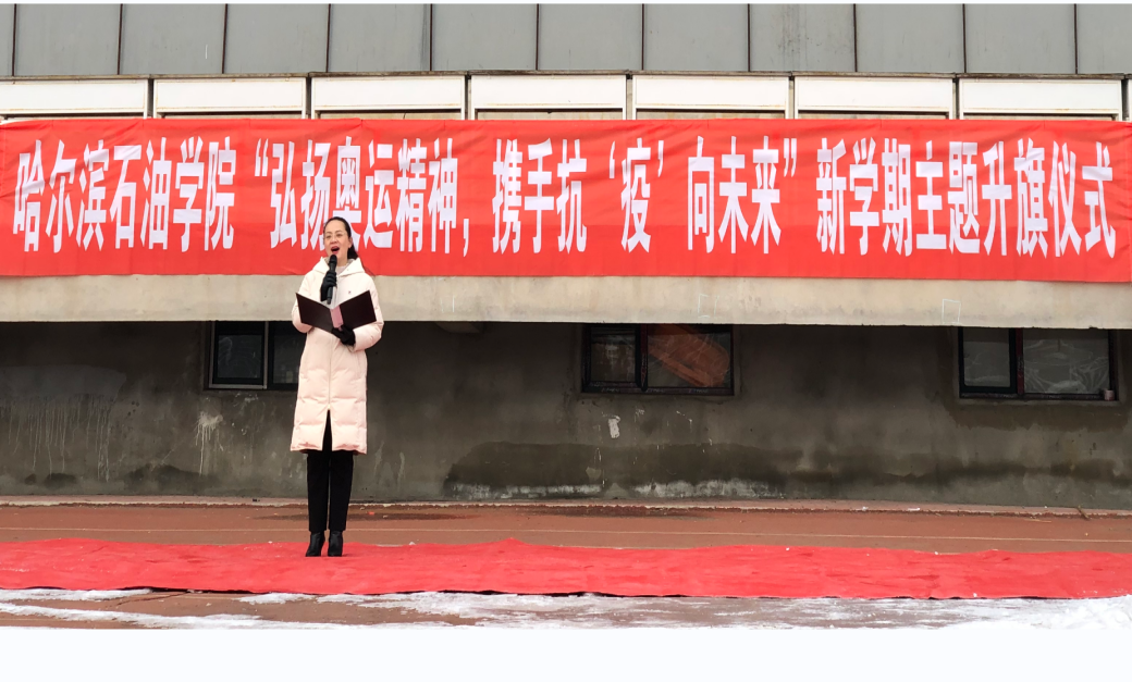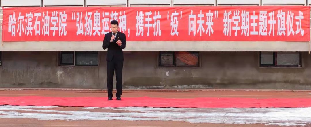 学生会代表魏毓彬同学从坚定理想信念,提高个人素质;做好疫情防控,共度疫情;共建文明校园,争做文明大学生三个方面向全校学生发出倡议,他表示作为新时代的哈油青年,要上好新学期的每一节课,要学习奥运健儿不畏艰难、敢于争先的奋斗品格,以青春之火共筑和谐校园,同时,他还希望大家能秉承“博学求实,励志创新”的校训,勇于实践,敢于创新,锐意进取,甘于奉献,为学校各项事业的蓬勃发展贡献力量,为实现中华民族伟大复兴宏伟目标奋勇前进。