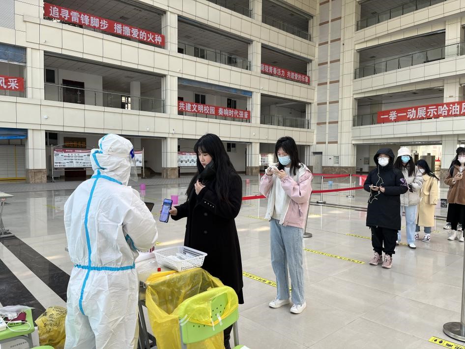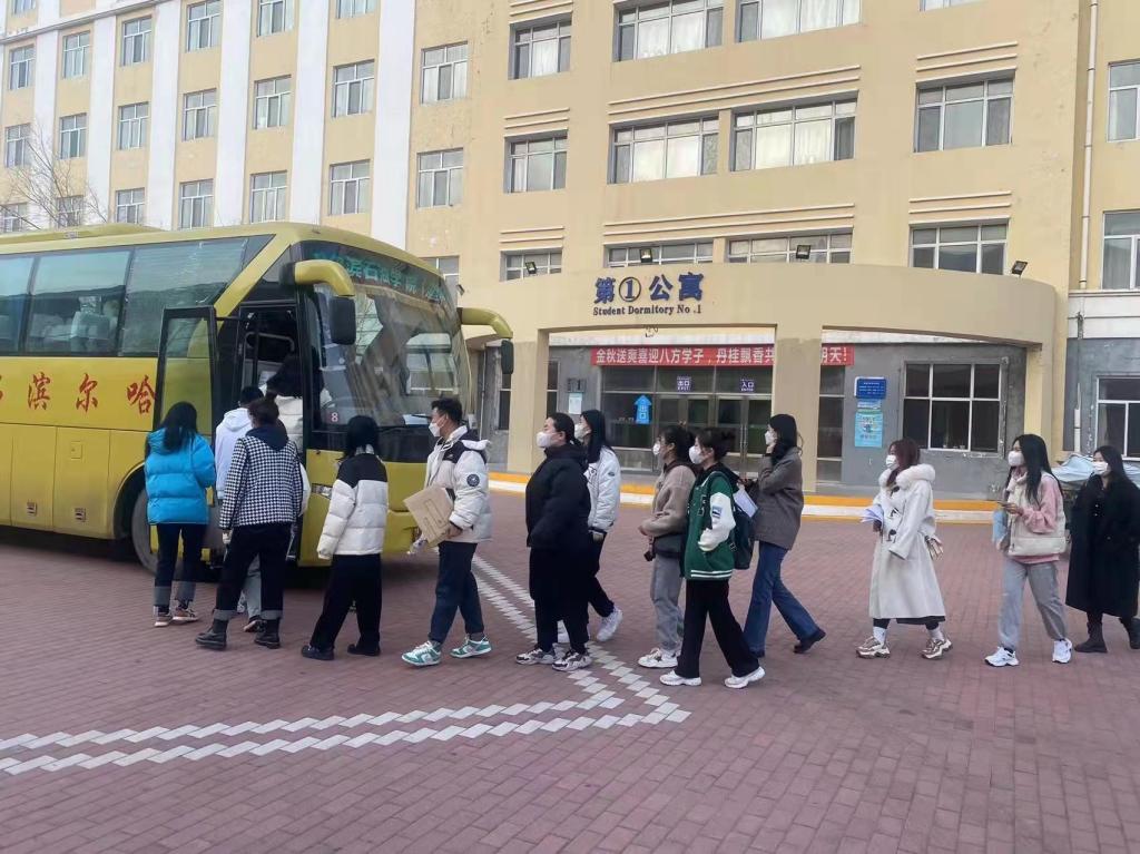 为了给学生提供便利条件,3月11日上午,考生们在主楼阳光大厅有序进行核酸检测。3月12日,经学校统一调度,提前按照考点分布整理路线,安排了直达黑龙江外国语学院、哈尔滨师范大学、哈尔滨商业大学、黑龙江科技大学、黑龙江东方学院、哈尔滨剑桥学院、哈尔滨第一二二中学等考点的客车,覆盖了香坊区及平房区所有考点的四条送考线路,确保出行安全。解决了考生因疫情防控工作要求而难以解决的“急难”问题。此举受到学生们的广泛好评。