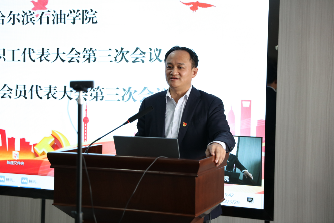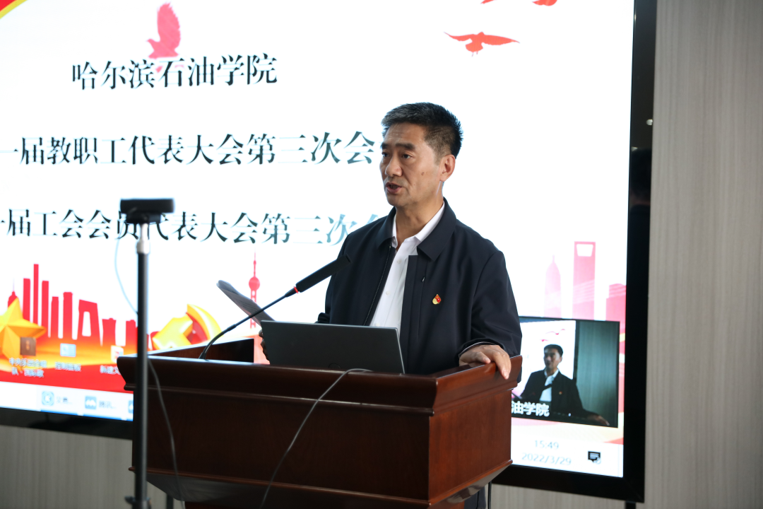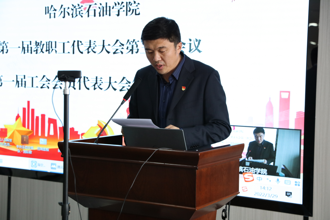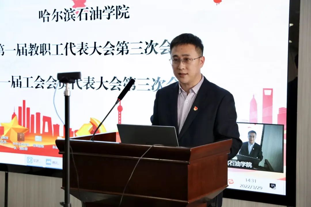 工会副主席毛雷作《万博max官网第一届教职工代表大会第三次会议和第一届工会会员代表大会第三次会议筹备工作报告》