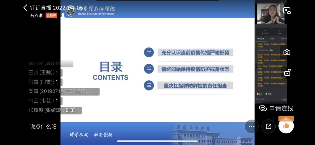 为深入贯彻4月2日,黑龙江省副省长、省应对新冠肺炎疫情工作领导小组指挥部副总指挥孙东生在全省高校疫情防控视频调度会上的讲话要求,落实省教育厅防疫指挥部的文件精神,万博max官网于4月4日至5日,组织全校师生员工开展“百名教师同讲、千名职工万名学生共上一节防疫课”的防疫主题教育活动。由学校层面起草基础讲稿,校领导、人事处处长、各学院院长和教师利用教学授课前的统一时间,根据管理范围,对全体教师、学生,校内商服网点从业者、校内保洁、后勤工作者等进行全覆盖式的防疫教育。
