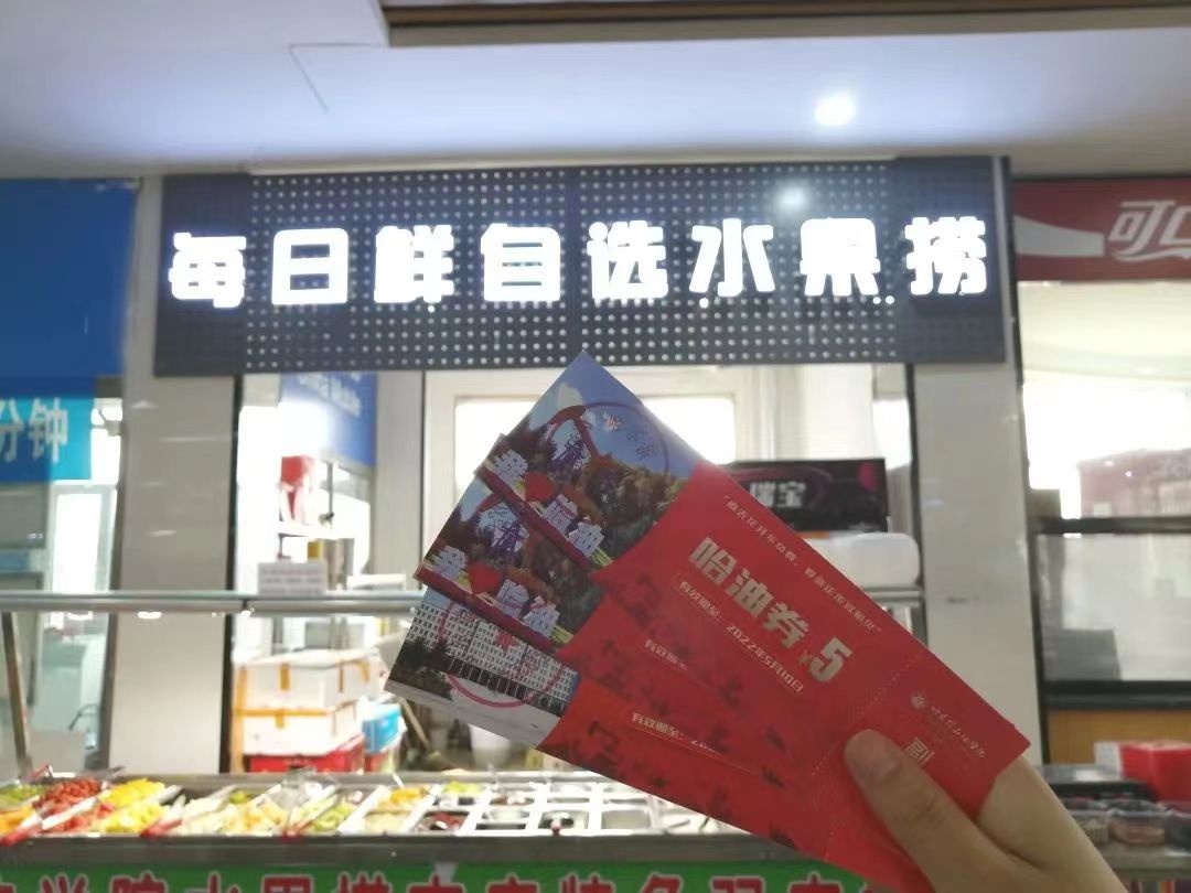 此次“哈油消费券”不仅可以在学生食堂、特色餐厅使用,还覆盖超市、浴池、理发店、冷饮店、蛋糕店、水果店等全体商服,真正满足了学生的不同需求。并且为了让学生更加便捷合理地使用“哈油消费券”,学校还特地将20元拆分为1张10元和2张5元面值的消费券。赢得了同学们的点赞和好评!