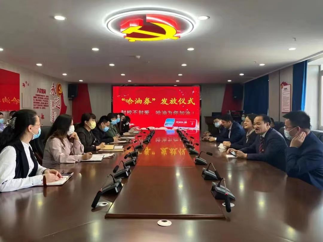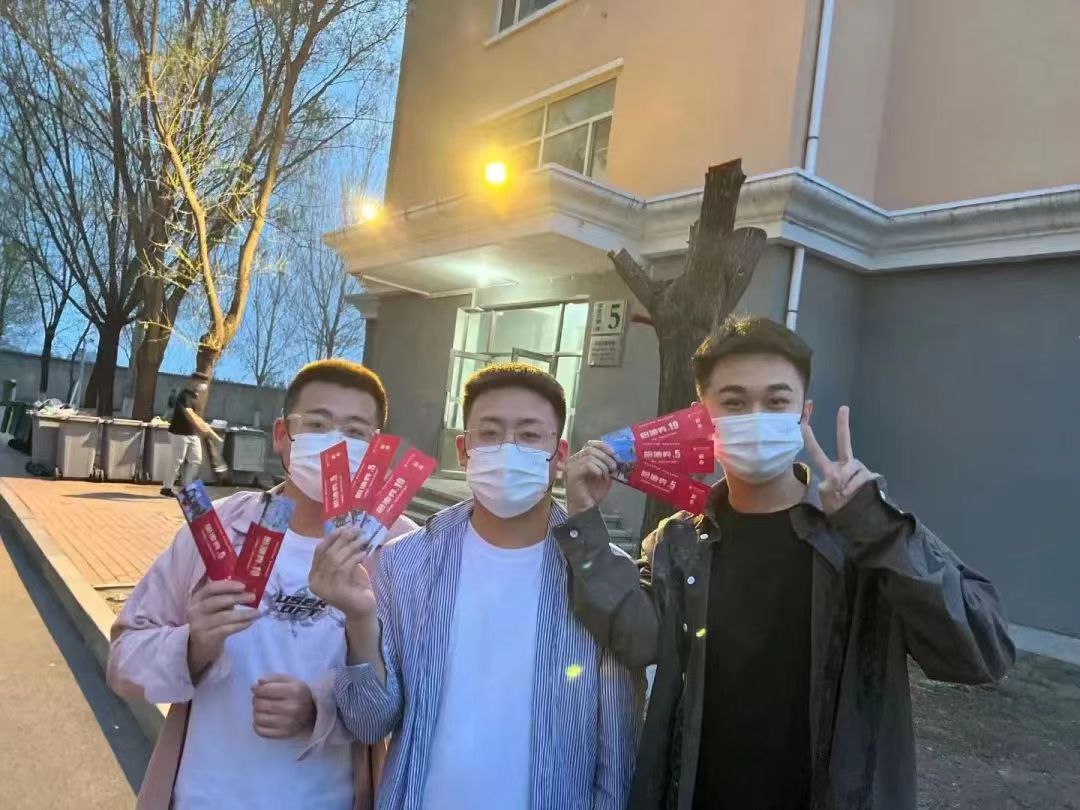 5月3日,一摞摞“哈油消费券”准备就绪,学校在综合楼举行了一个盛大的“发放仪式”,由全体在校辅导员老师统一领取,然后亲自发放至每一名学生的手中。